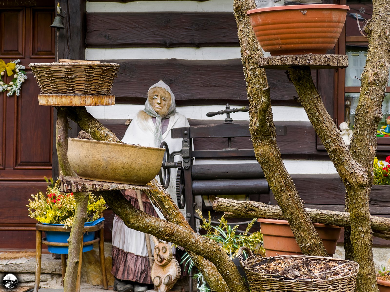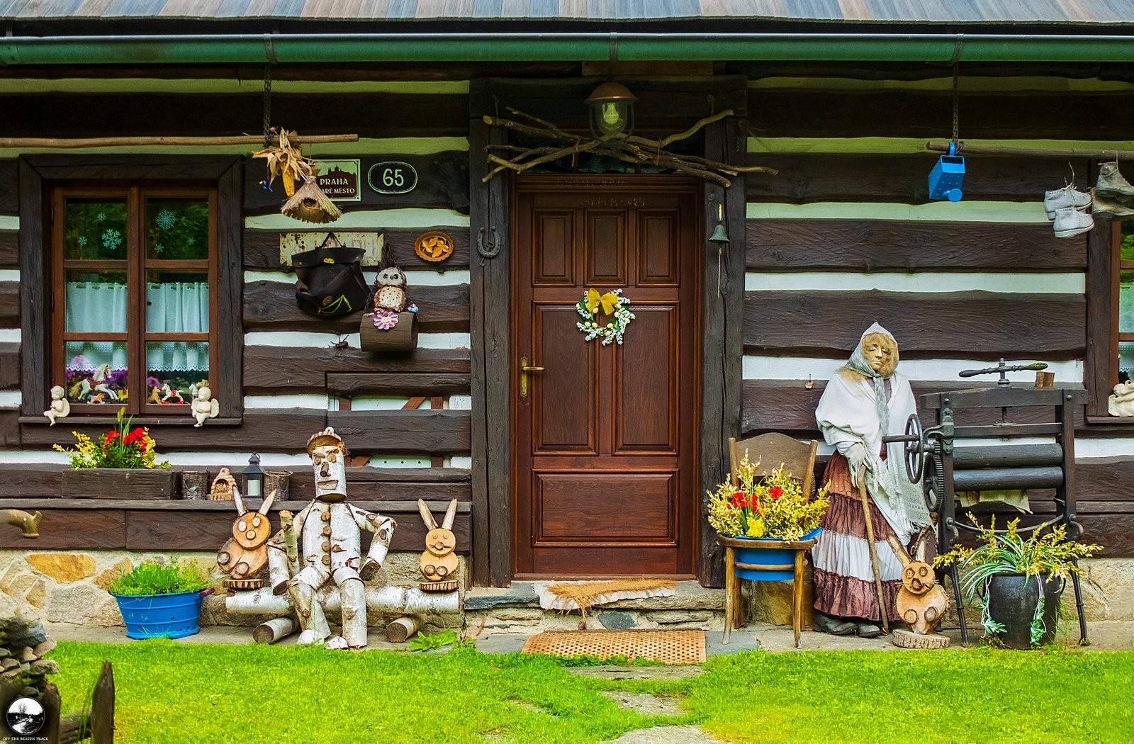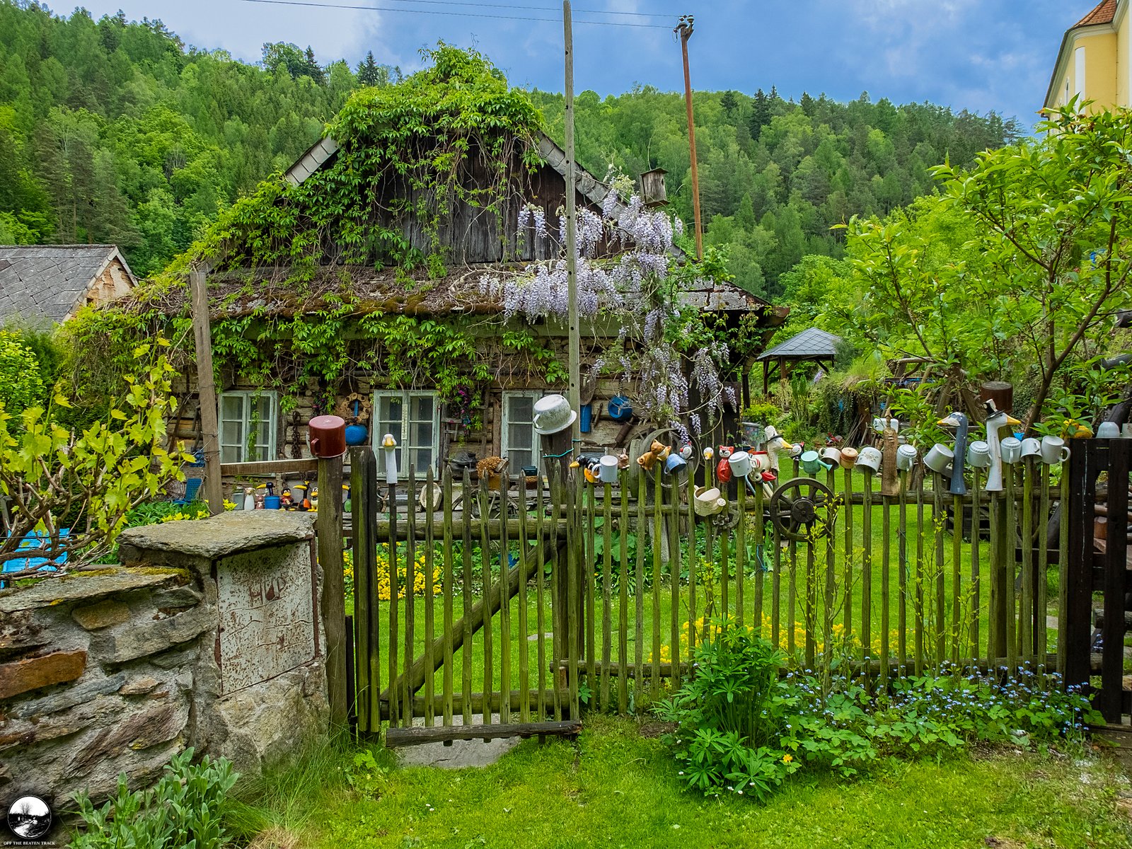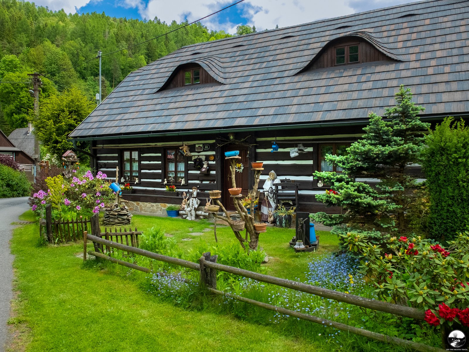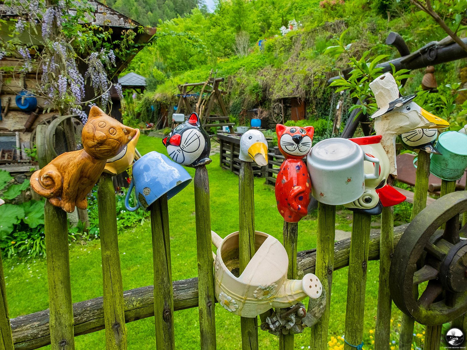 Another highlight is the fence, decorated with dozens of colorful cups. While this type of decoration is fairly common in rural parts of the Czech Republic, this particular one is unique. Hidden among the cups are a few adorable goose heads, giving it a special touch.