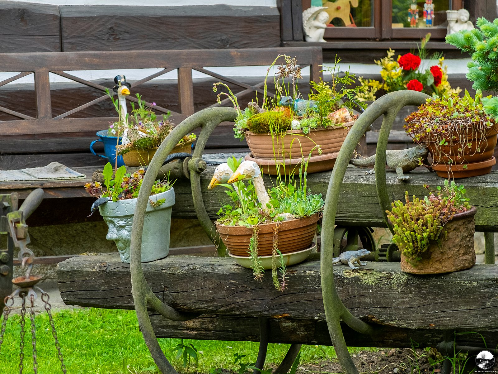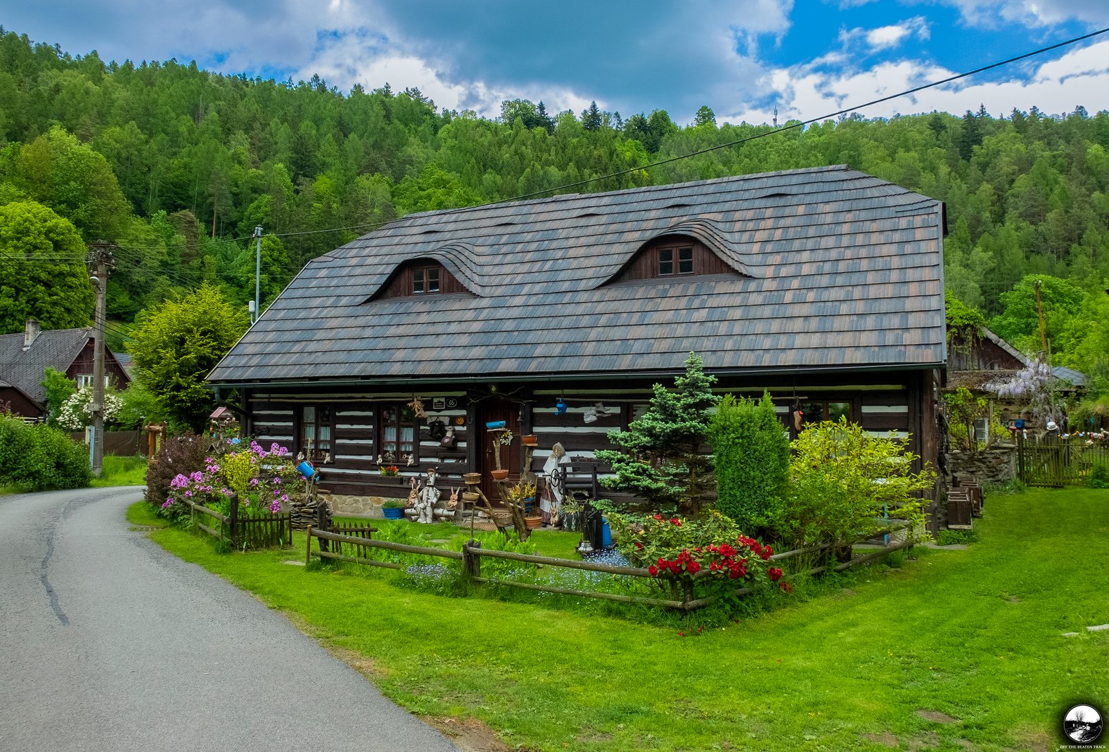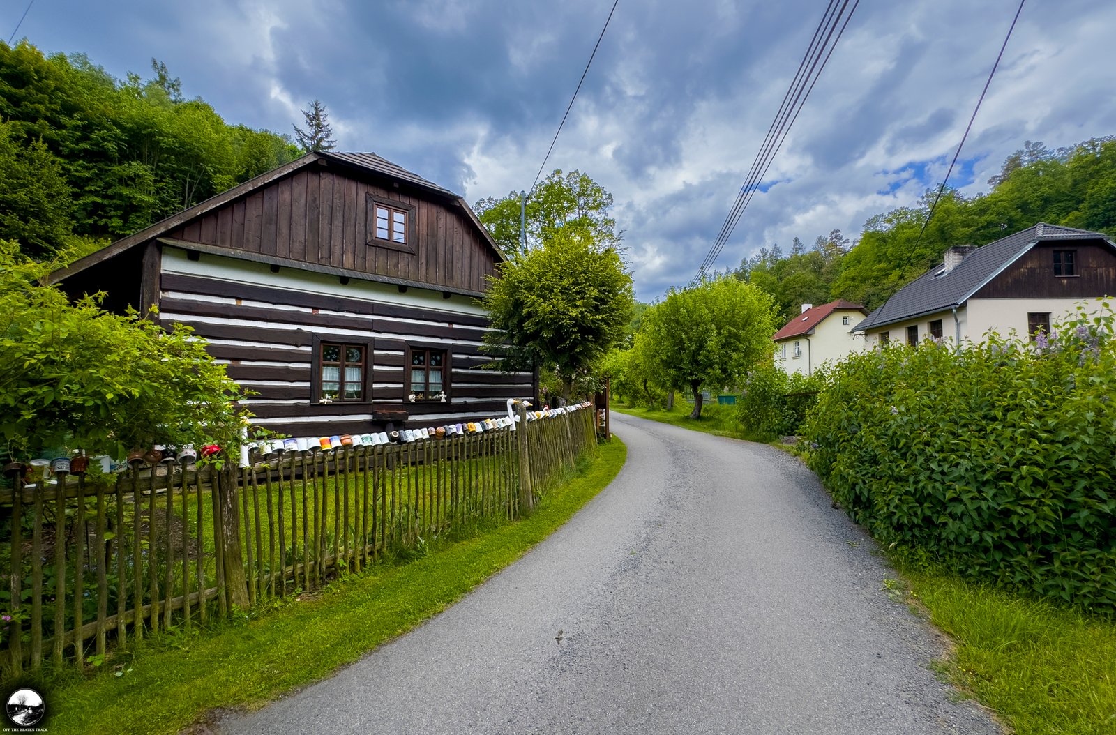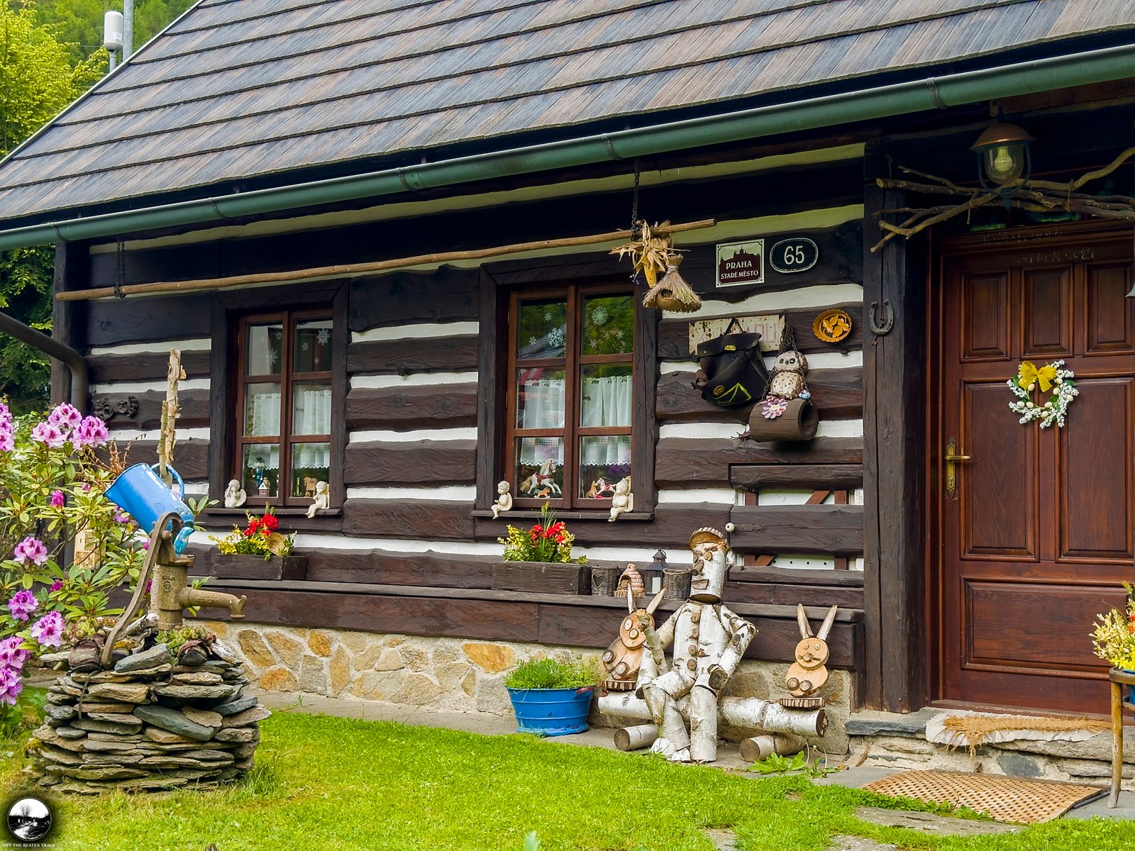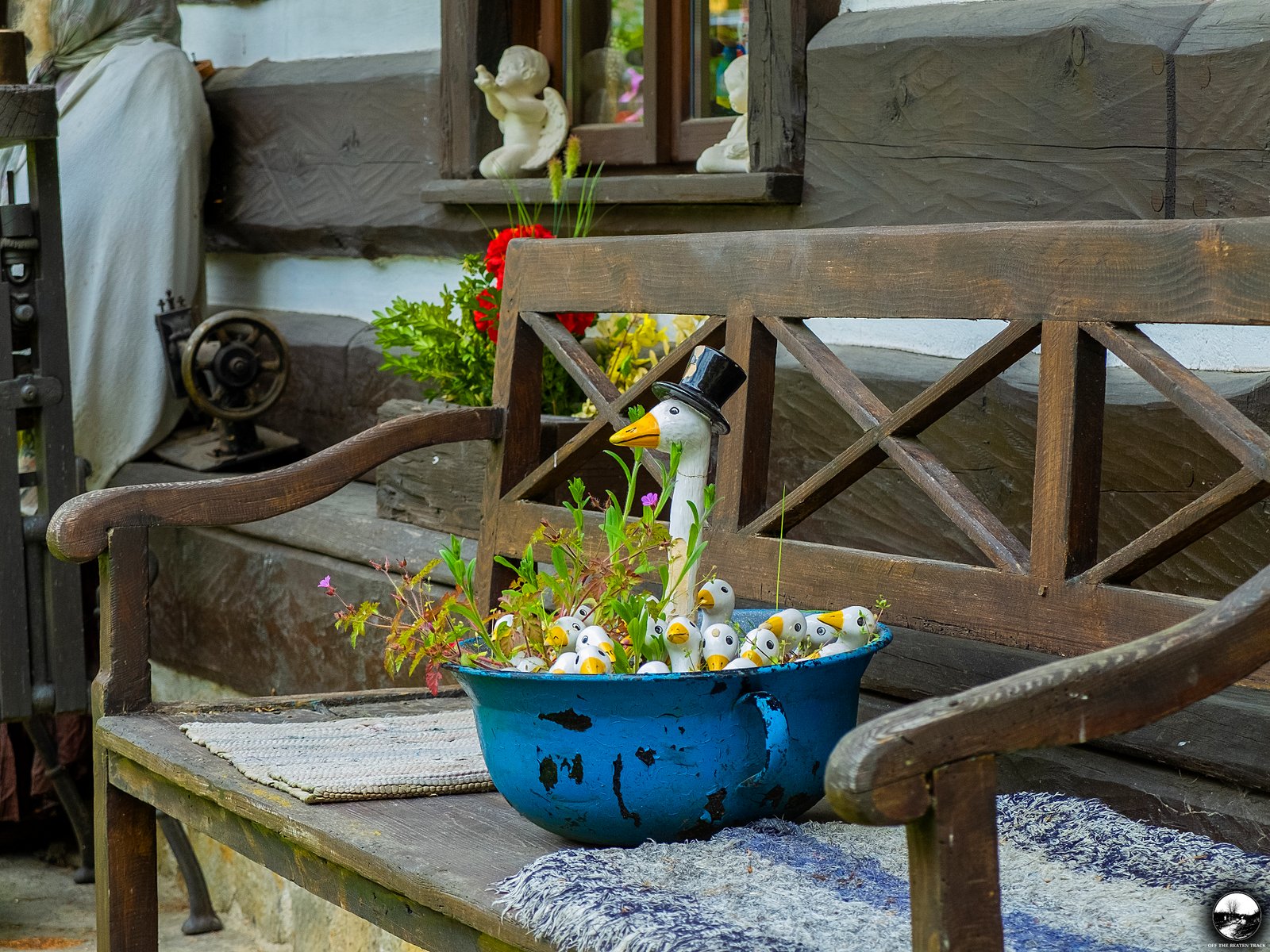 Another highlight is the fence, decorated with dozens of colorful cups. While this type of decoration is fairly common in rural parts of the Czech Republic, this particular one is unique. Hidden among the cups are a few adorable goose heads, giving it a special touch.